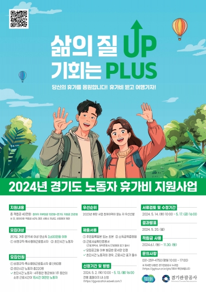 경기도가 휴가 사용이 어려운 비정규직 노동자들의 휴식권 보장을 위해 지난해보다 200명 많은 2,200명을 대상으로 총 7억 7천만 원 예산을 들여 ‘2024년 경기도 노동자 휴가비 지원사업’을 추진한다.