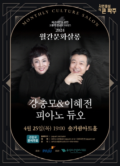 김경일 파주시장은 “월간문화살롱은 평소 클래식을 접하기 어려운 시민들에게 문화 예술을 공유해 음악의 아름다움에 대한 새로운 시각을 경험할 수 있는 자리가 될 것”이라고 말했다.