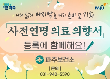 이한상 파주보건소장은 “최근 삶의 질 향상만큼 존엄하게 생애를 마무리하는 것에 대한 사회적 관심이 점차 커지고 있어 파주시민들이 연명의료에 대해 이해하고 자기결정권을 실현할 수 있도록 적극 알리겠다”라고 전했다.
