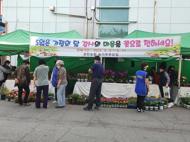 운영 시간은 오전 9시부터 오후 5시 30분까지다. 판매 품목으로는 5월 가정의 달을 맞아 준비한 카네이션, 백일홍 등 26종의 꽃과 광탄면에서 직접 생산한 조청, 버섯, 채소류 등 농산물로 구성되어 있다.