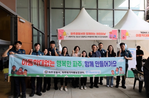 파주경찰서(서장 김영진)는 어린이날을 맞아 5월 4일부터 6일까지 3일간 파주출판도시에서 열리는 어린이 책 잔치에 참여, 사이버 도박, 마약류 등 청소년 대상 신종범죄 근절과 학교폭력, 실종 예방 홍보 활동을 전개하고, 파주시 아동보호전문기관과 협업하여 아동학대 예방을 위한 캠페인을 진행하였다.