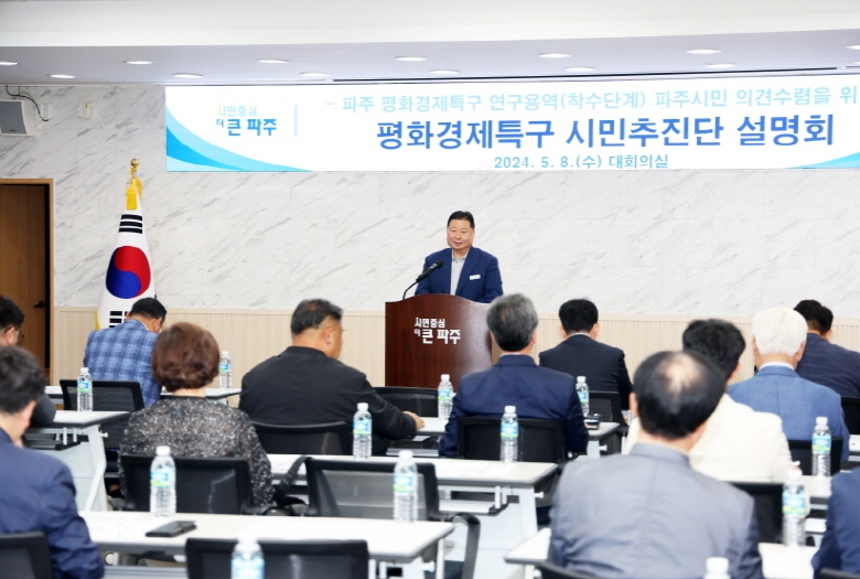 파주시는 평화경제특구 조성 구체화 방안을 마련하기 위한 연구용역을 시작한 가운데 시민 의견을 수렴하기 위해 지난 8일 ‘평화경제특구 유치 시민추진단 설명회’를 개최했다.