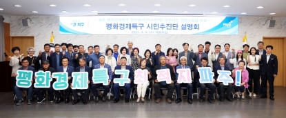 ‘평화경제특구 유치 시민추진단’은 각계각층의 시민 대표 121명으로 구성되어 지난해 11월 발족하였으며, 시민 공감대 확산을 위한 홍보활동 및 연구용역 의견제시 등 특구 유치를 위한 활동을 이어 나가고 있다.