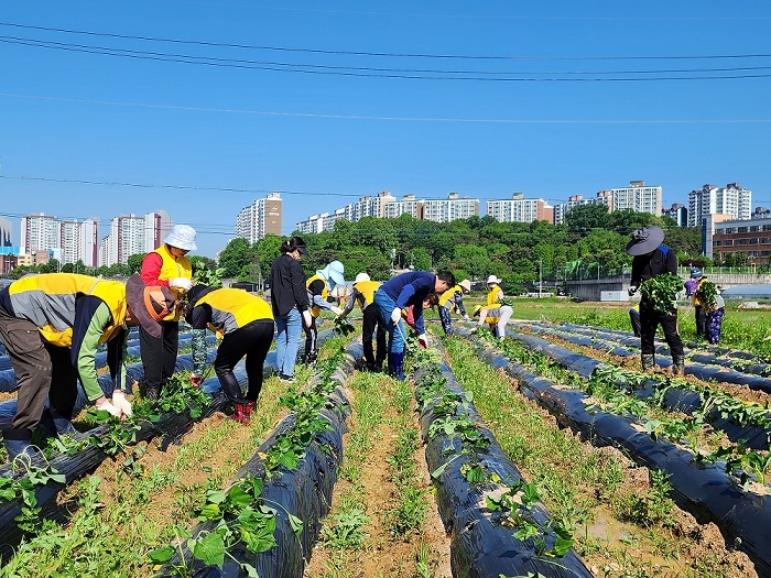 이번 행사에는 실버경찰대원 22명을 비롯해 금촌2동 직원들이 함께 참여해 고구마 심기에 동참했다. 이들은, 지난해 대비 3배 가까운 면적에 3,500여 개의 모종을 심었다.