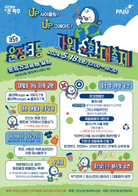파주시 운정3동은 오는 18일 운정건강공원 일대(동패동 1800)에서 ‘제5회 자원순환대축제’를 개최한다.