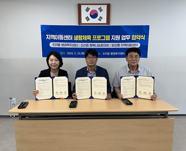 조리읍과 협약에 참여한 두 단체는 지역 내 어려운 아동들을 발굴하고 연계하는 등 민관이 상호 협력해 취약계층 아동들의 복지 증진에 힘쓰는 한편, 지역아동센터를 이용하는 아동들에게 생활체육 프로그램을 지원해 아이들이 건강하고 행복한 사회 구성원으로 성장할 수 있도록 적극 지원하기로 약속했다.
