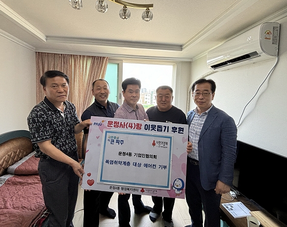 파주시 운정4동은 기업인협의회가 폭염을 대비하여 관내 취약계층이 시원한 여름을 보낼 수 있도록 벽걸이 에어컨을 기부했다고 23일 밝혔다.