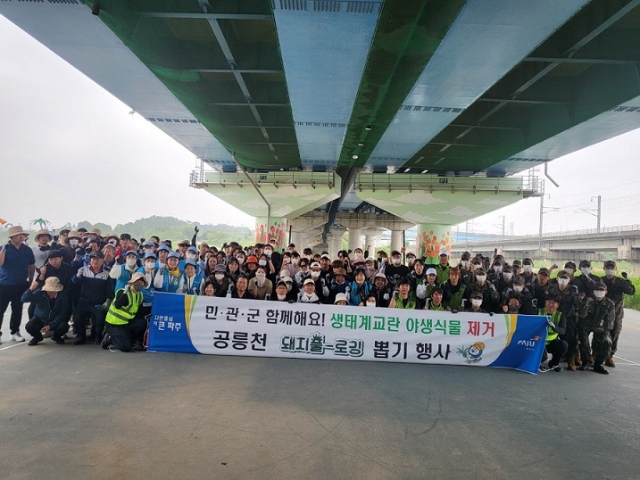 파주시, 생물다양성의 날 맞아 생태계교란 야생식물 제거 활동 실시 - 민관군 100여 명 참여