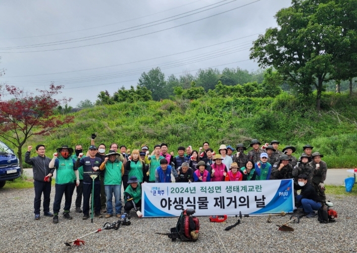 파주시 적성면은 23일 생태계교란 야생식물 퇴치를 위해 민관군 합동으로 설마천(지방하천) 일원에서 대대적인 제거활동을 실시했다.