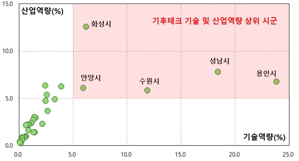 주 : 기술역량(%)=시군별 특허출원건수/경기도 특허출원건수*100