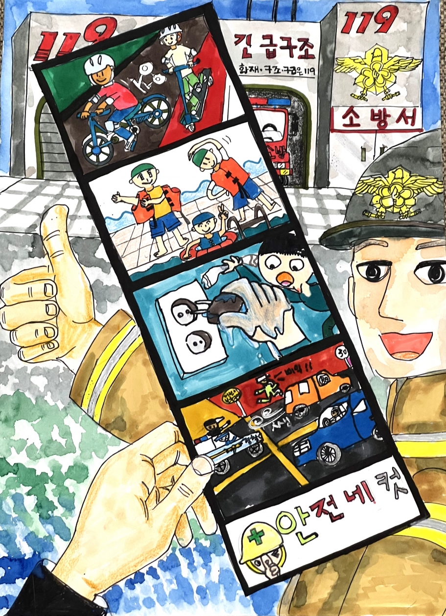 「나의 ‘안전네컷’을 소개합니다」라는 작품명으로 자전거 사고, 물놀이 사고 등 4가지 주제를 하나의 그림으로 담아 표현해 심사위원의 눈길을 끌었으며 경기도 내 각 소방서별로 선정된 최우수작 34점을 대상으로 심사를 진행, 송민호 어린이의 작품에 우수상을 안겨주었다.