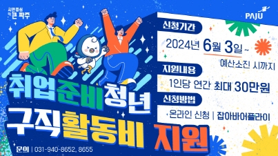 김수태 청년청소년과장은 “이번 사업을 통해 고물가로 수입원이 없어 더 큰 부담을 느끼는 미취업 청년들의 경제적 부담이 줄어들길 바란다”라며, “앞으로도 파주시는 관내 청년들의 원활한 사회 진출을 돕기 위해 다양한 사업을 발굴하겠다”라고 말했다.