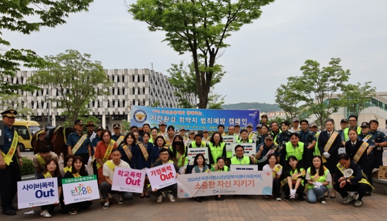 파주경찰서는 5. 30.(목) 운정 야당역 일대 상가 밀집 지역에서 민·관·경 합동으로 청소년 유해 환경 및 다중운집장소 범죄 취약지 점검과 범죄예방 홍보를 위해 합동순찰 캠페인을 실시하였다.
