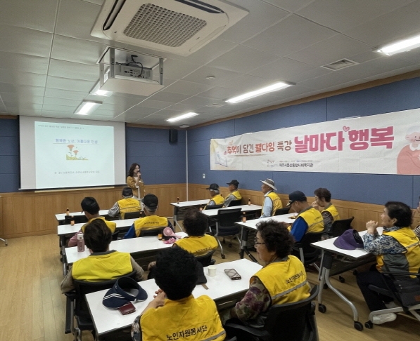 어르신사랑연구회 유경 대표가 강사로 나서 ‘행복한 노년, 아름다운 인생 설계’란 주제로 강연을 했다. 행복한 노년 설계 교육은 지난 11일을 시작으로 18일에는 ▲행복한 노년을 위한 실천, 25일에는 ▲지역사회의 일원으로 살아가는 법을 주제로 교육이 진행된다.