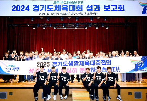 파주시는 지난 12일 2024 경기도체육대회 성과보고회를 파주시민회관 소공연장에서 열었다. 이날 보고회는 김경일 파주시장과 박정 국회의원, 시민 유공자 등 100여 명이 참석한 가운데 기념 영상 시청과 유공자 포상, 성과 보고 등의 순으로 진행됐다.