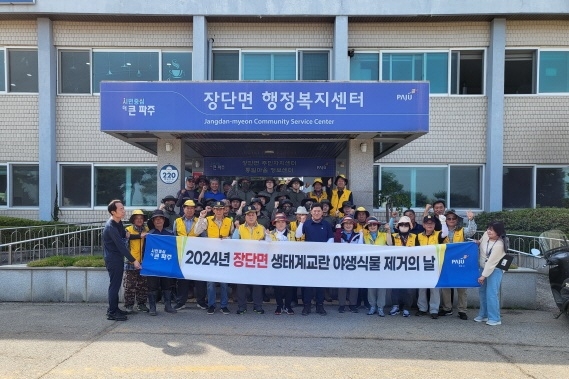 파주시 장단면은 6월 12일 민관군 합동으로 백연리 480-12번지 일원에서 생태계 교란 야생식물 제거 활동을 실시했다.
