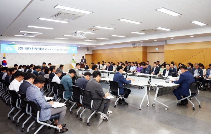 파주시는 19일, 김경일 파주시장과 실·국·과장 등 간부공무원 100여 명이 참석한 가운데 ‘파주시 민선8기 2주년 성과’를 공유하는 확대간부회의를 개최했다.