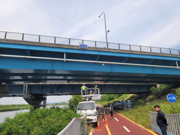 파주시, 경기도 최초로 공릉천자전거길 교각에‘태양광 엘이디(LED) 기초번호판’ 설치