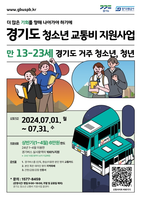 파주시는 7월 31일까지 ‘경기도 청소년 교통비 지원사업’ 및 ‘파주시 저소득 청소년 교통비 지원사업‘ 1분기 신청을 받는다.
