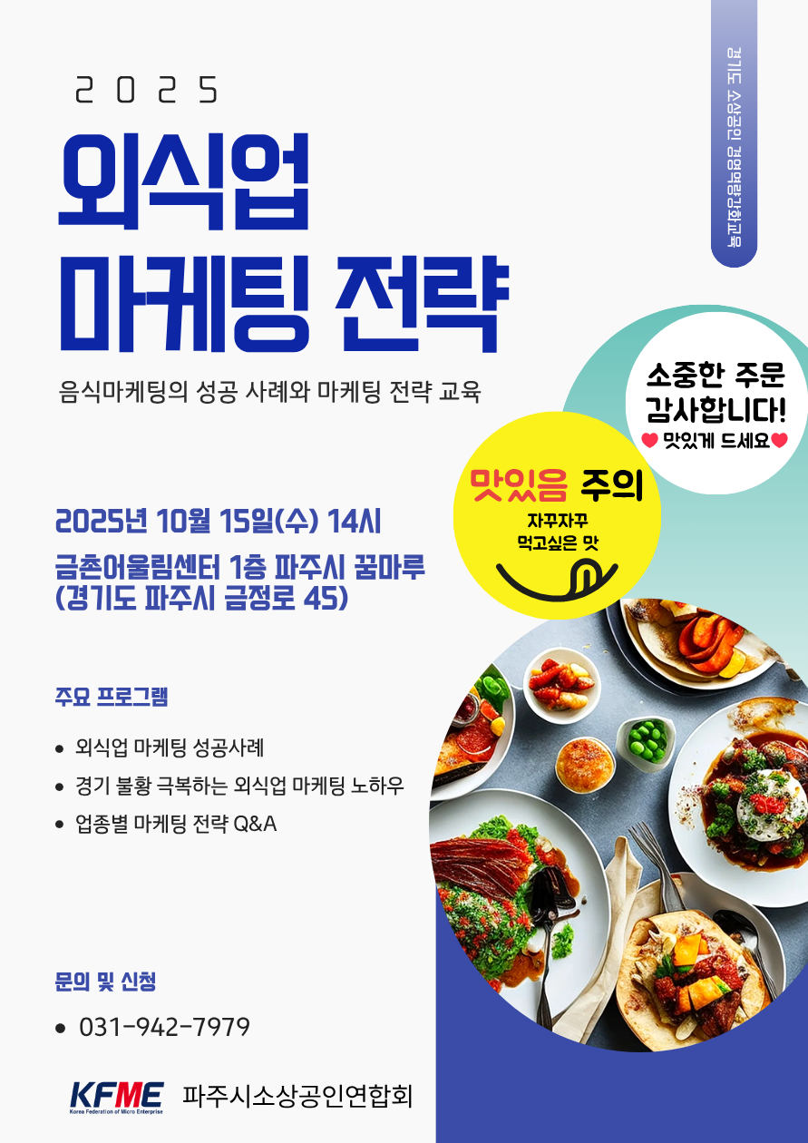 경기도 소상공인 경영역량강화교육 "2025 외식업 마케팅 전략" - 10. 15 (수) 14시 금촌어울림센터