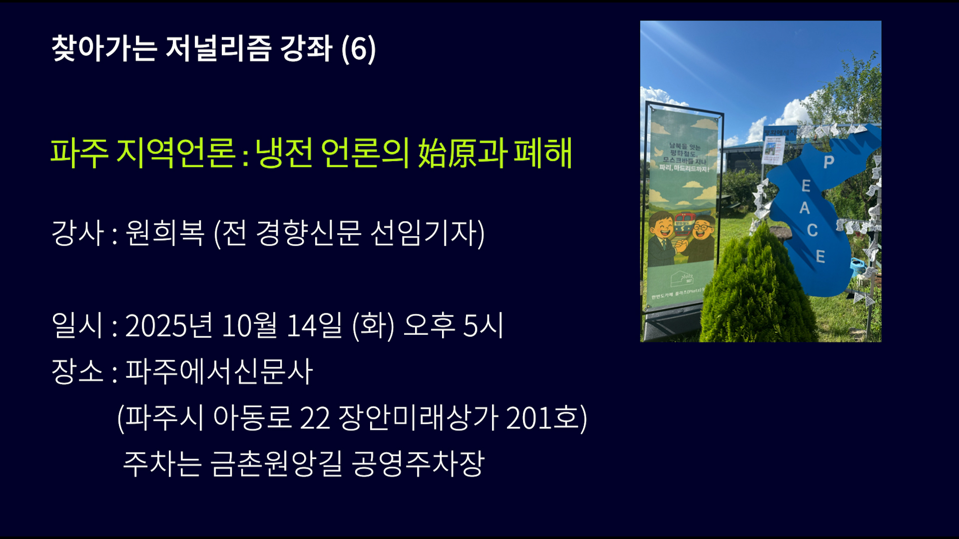 찾아가는 저널리즘(6) 평화저널리즘이란 - 원희복 전 경향신문 선임기자 강연