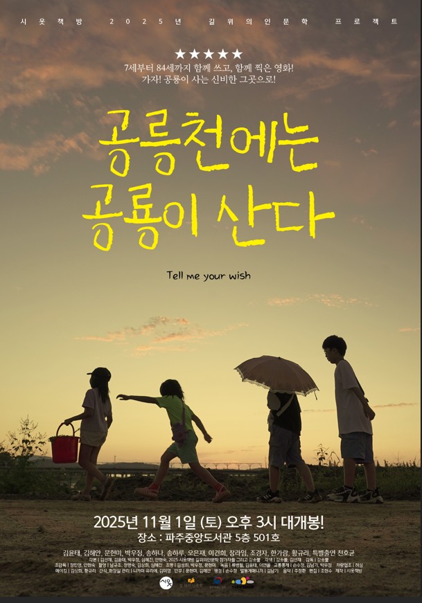 <공릉천에는 공룡이 산다> 상영은 11월 1일 오후 3시 파주 중앙도서관 5층 강당에서 한다.