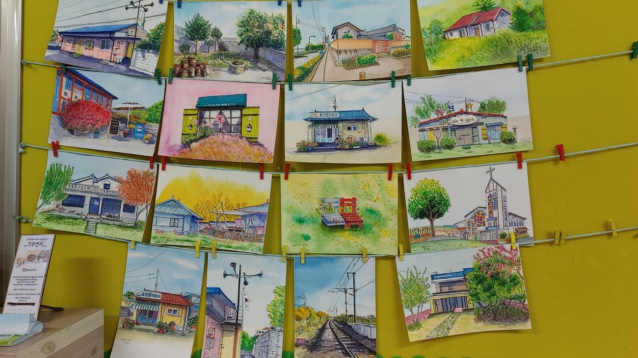 또 한편에는 도서관 어르신 동아리들의 수채화 작품이 전시되어 있었다. 그림 실력이 제법이어서 여쭤보았더니, 벌써 3년 차 그림을 그려왔다고 한다.