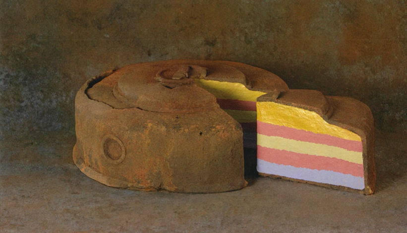 지뢰로 케익도 만들었다. 지뢰의 단면이 노랑 빨강 스펀지케익으로 되어 있다. ‘아니, 지뢰가 케익이라니?’ 이런 대단한 발상을 어찌했을까. 그는 이 지뢰케익을 미국 백악관에 보냈다. 법원우체국에서 국제우편으로 보냈다고 한다. 트럼프가 평화의 기운을 받았으면 해서, 작품을 만들때 ‘전쟁은 없어야한다, 평화롭게 살자’는 기운을 한가득 담았다고 했다.
