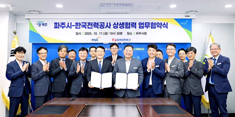 파주시와 한국전력공사는 지난 17일, 대규모 개발사업의 성공적인 추진과 안정적인 전력 공급을 위한 상생 협력 업무협약을 체결했다고 밝혔다.