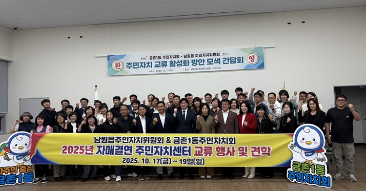 이날 간담회에는 양 지역 주민자치위원과 이은숙 금촌1동장, 김효상 남원부읍장 등 40여 명이 참석해, 주민자치 우수사례를 공유하고 자매결연 관계를 지속적으로 유지하기 위한 방안을 논의했다.