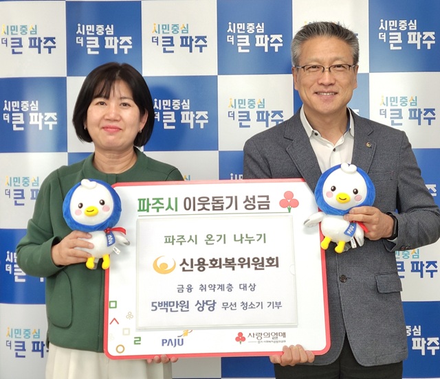파주시는 지난 21일 신용회복위원회 인천·경기북부지역본부에서 금융 취약계층을 위한 500만 원 상당의 무선 청소기를 전달받았다고 밝혔다.
