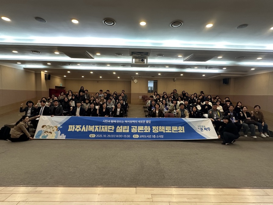 파주시는 지난 29일 교하도서관 3층 소극장에서 ‘파주시복지재단 설립 공론화 정책토론회’가 시민, 사회복지시설장, 사회복지 종사자들의 참여 속에 성황리에 진행됐다고 밝혔다.