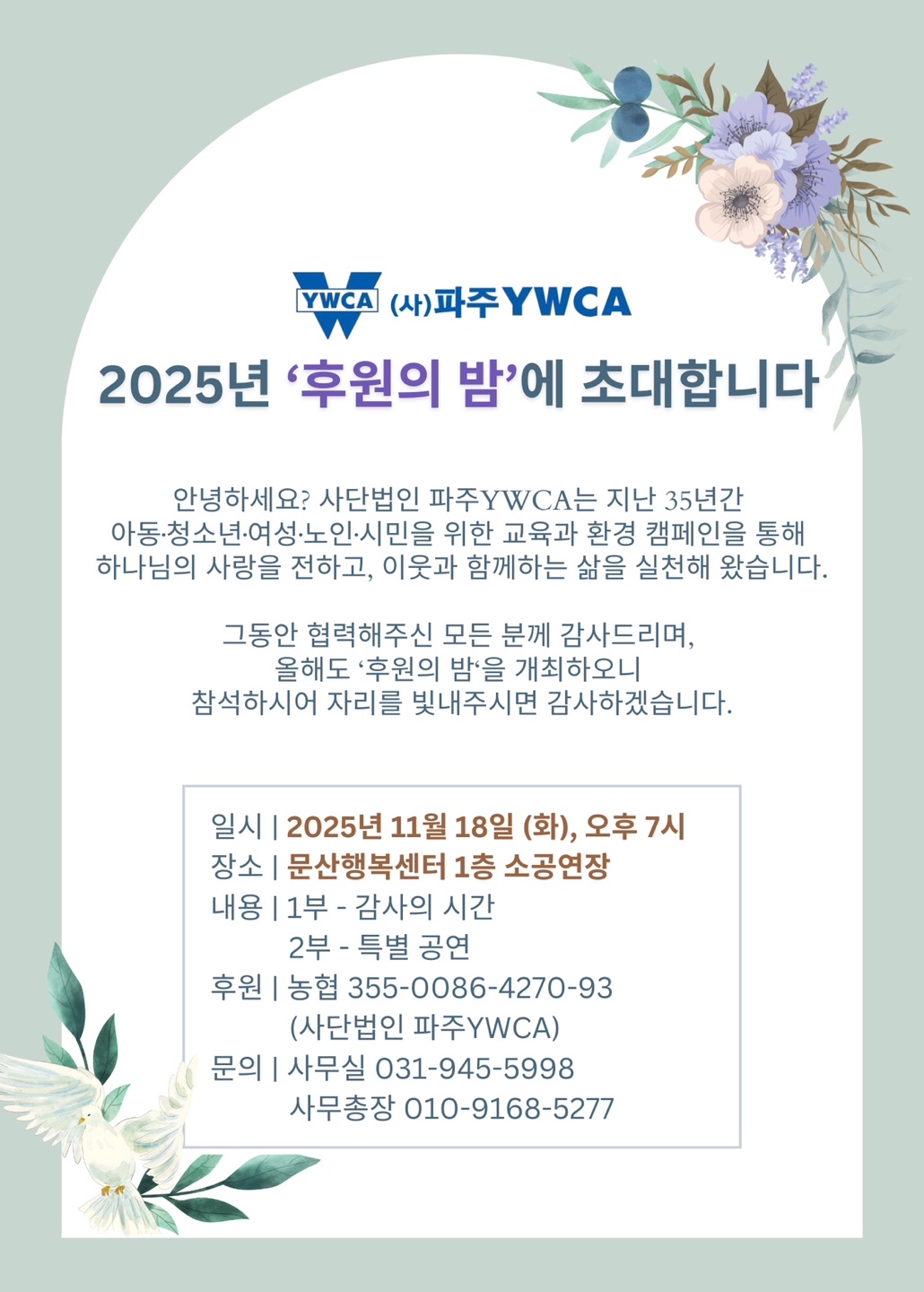 (사)파주YWCA - 2025년 '후원의 밤'에 초대합니다
