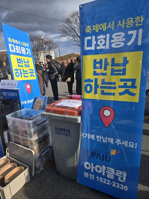 시는 지난 10월 열린 ‘파주개성인삼축제’와 지난주 개최된 ‘파주장단콩축제’ 행사장에 다회용기를 제공하고, 축제장 내에 다회용기 수거함을 설치하는 등 1회용품 사용을 줄이기 위한 다양한 노력을 펼쳤다.