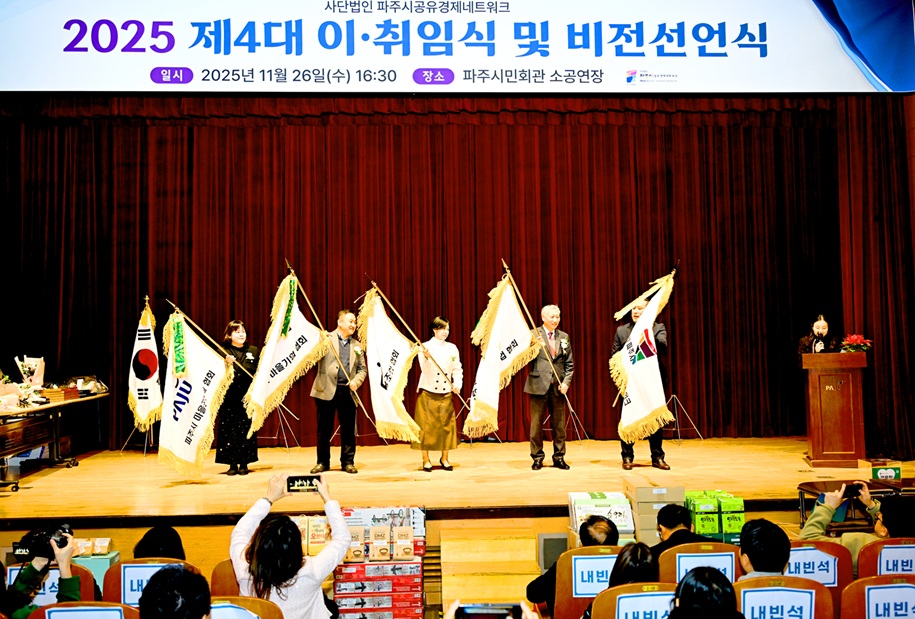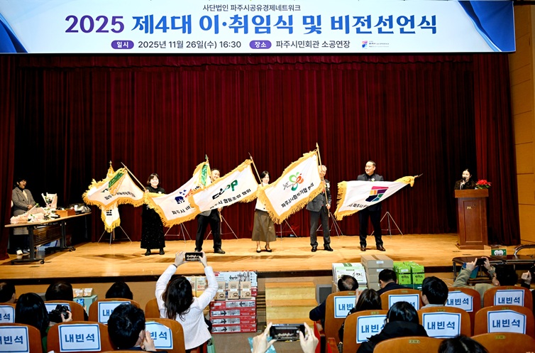 파주시는 지난 26일 파주시민회관 소공연장에서 ‘㈔파주시공유경제네트워크 제4대 이·취임식 및 비전 선포식’을 성공적으로 개최했다고 밝혔다.