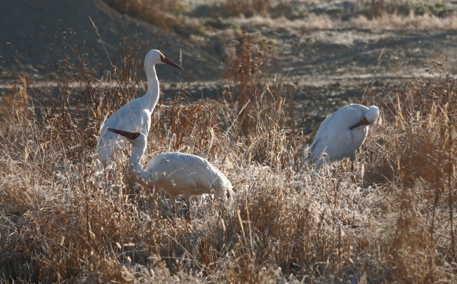 시베리아흰두루미에 근접지역에 있는 늘 월동해 오는 두루미, 재두루미 사이에 검은목두루미, 흑두루미, 쇠재두루미, 개나디안두루미도 채식을 하고 있는 모습을 확인할 수 있다.