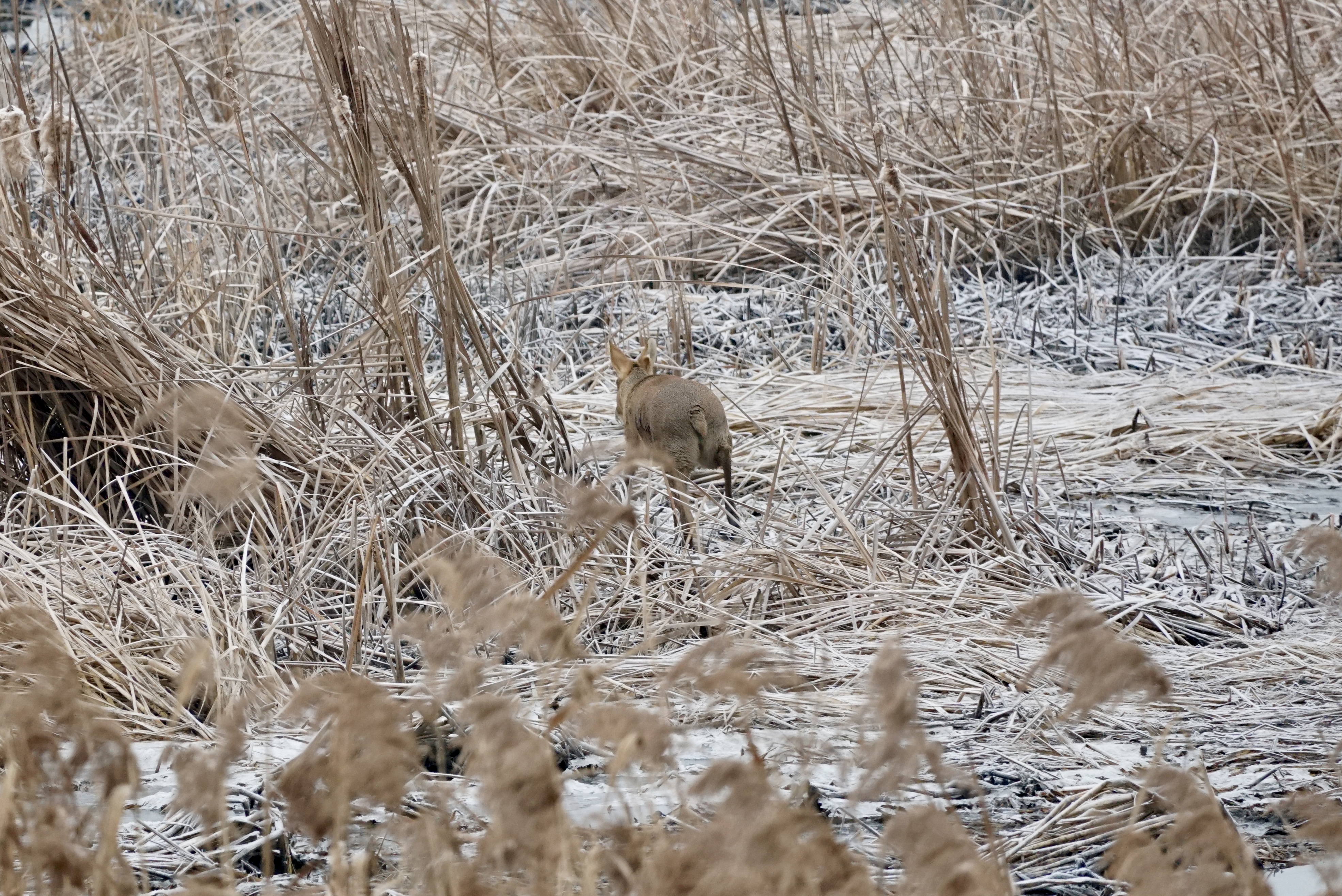사람들이 재두루미의 평화를 깨트린 댓가로 얻은 한 장이다. 솔직히 직관적으로는 꽤나 멋진 풍경이다. 사람들은 그래서 이런 걸 사진에 담아보려고 고민도 없이 새들의 평화를 깨뜨리려 하는 것인가? 그러나 나에겐 수치의 기록으로 남았다. 깨진 평화는 아름답지 않다. 그저 정신 없이 안심하고 낙곡을 먹는 재두루미의 풍경이 훨씬 아름답다.