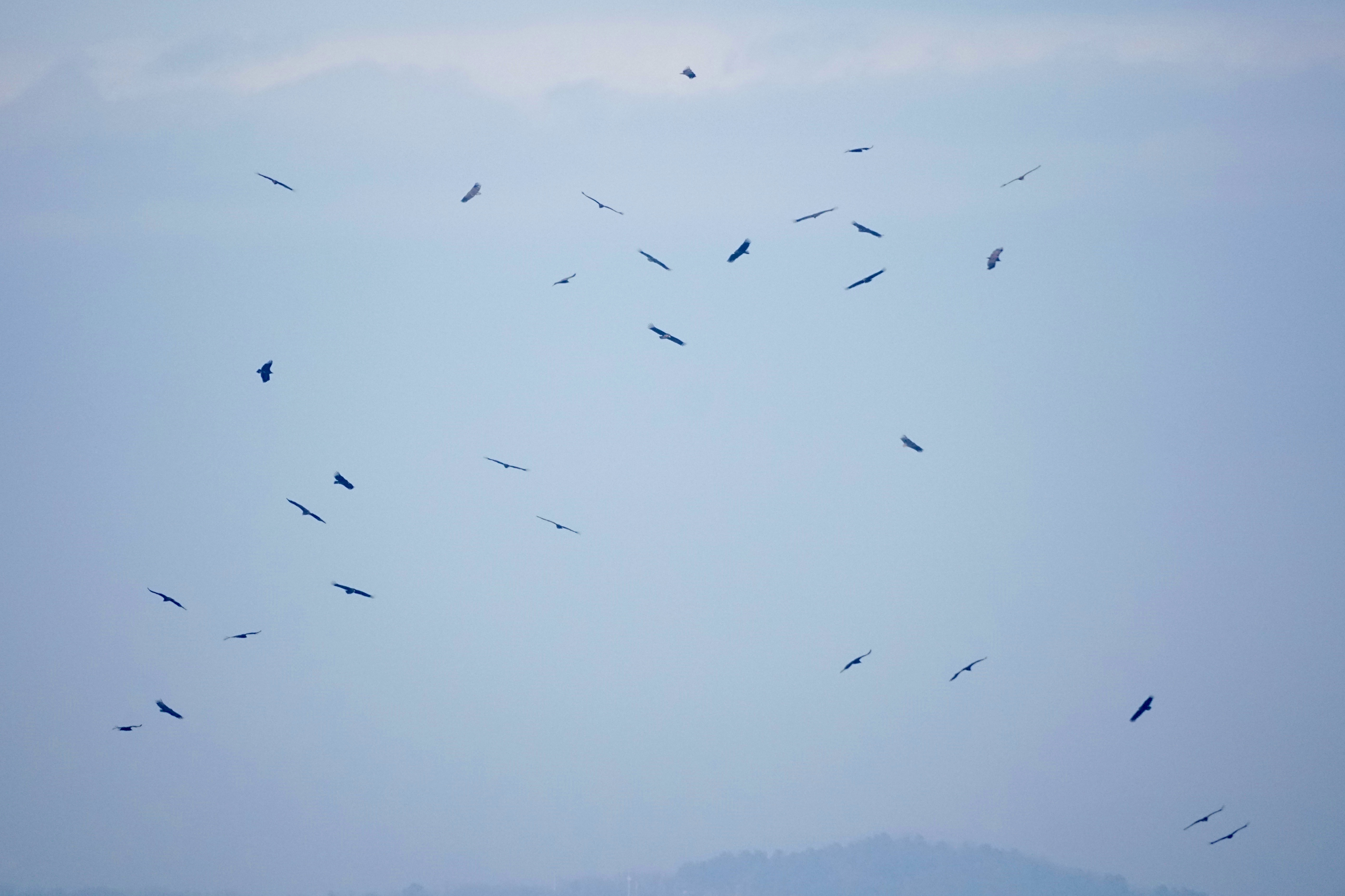 오후의 상승기류를 타고 독수리들이 선회하며 날아오르기 시작했다. 사진에 찍히 않은 숫자까지 포함하면 40-50마리는 되 보였다.