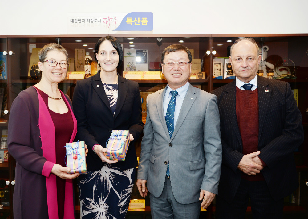파주시의 해외 교류도시인 영국 글로스터시의 한국-글로스터셔 친선협회(GROK) 크리스 라일랜드(Chris Ryland) 이사를 단장으로 한 대표단이 지난 4월 22일부터 27일까지 5박 6일간의 일정으로 파주시를 방문했다.
