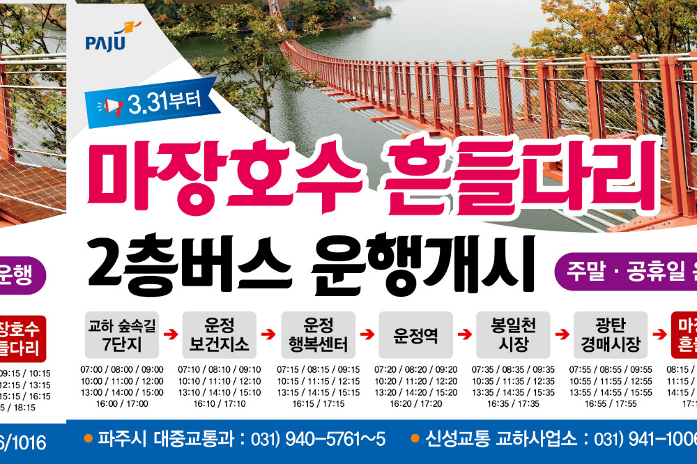 [파주시 대중교통과] 마장호수 흔들다리(7500번) 증차 운행