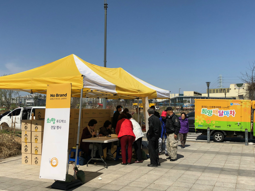 ‘노브랜드 찾아가는 희망푸드박스’는 경기광역 푸드뱅크가 신세계 이마트와 경기도 지원을 받아 경기도 지역을 순회하며 지역사회 내 복지사각지대에 있는 소외계층에게 식품 및 생필품을 지원하는 사업이다.