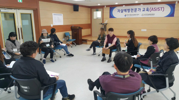 ASIST는 ‘실용적 자살 중재 능력 훈련(Applied Suicide Intervention Skills Training)’의 줄임말로 대상자별 특성에 맞는 전문적이고 체계화된 교육과정으로 구성돼있다. 이날 교육은 한국자살예방협회에서 파견한 이종화, 전은주, 박은호 전문 강사가 진행했으며 참여자들은 각종 위험상황(역할극) 대처에 대한 반복훈련으로 자살위험자의 안전대책을 마련하고 자살의 위험성을 줄이는 등 자살위험자 중재를 위한 지식과 기술을 배웠다.