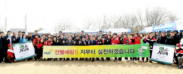 이날 캠페인은 파주시 풍년기원제에 참석한 500여명의 공무원 및 파주시 농업인 단체를 대상으로 산불조심 관련 산림 내 취사행위금지, 인화물질 소지 안하기, 소나무재선충병 방제 홍보물 배부 등 산불과 소나무재선충병으로부터 소중한 산림자원을 보호하기 위한 시민의 자발적 참여와 산림재해에 대한 경각심을 고취시켰다.