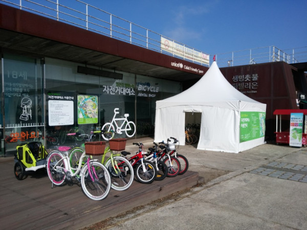 대여소에는 가족과 연인이 함께 탈 수 있는 2인용 자전거를 비롯해 유아, 아동용 자전거까지 다양하게 구비되어 있어 방문객들이 성별과 연령에 맞게 자전거를 선택해 이용할 수 있다.