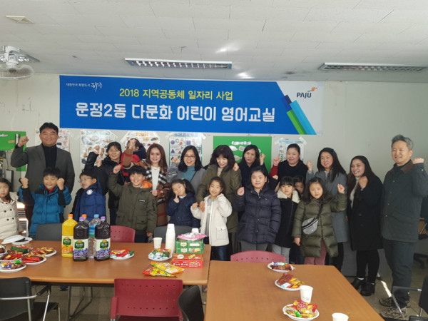 다문화 어린이 영어교실은 2018년도 지역공동체일자리 사업의 일환으로 다문화 가정에는 일자리를 제공하고 지역 어린이에게는 무료로 원어민강사의 영어교육 기회를 주는 운정2동의 특화사업이다.