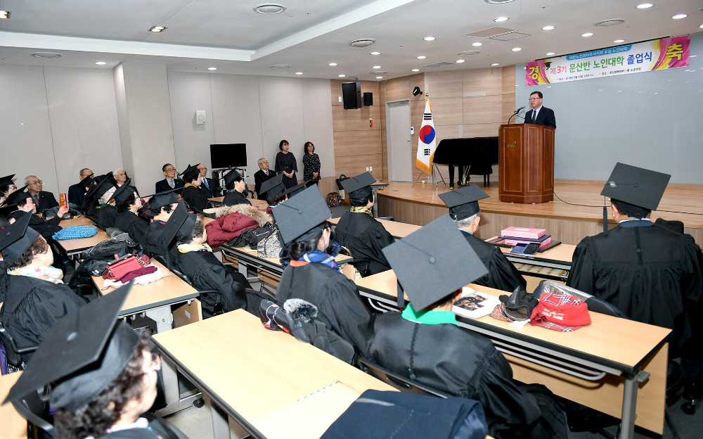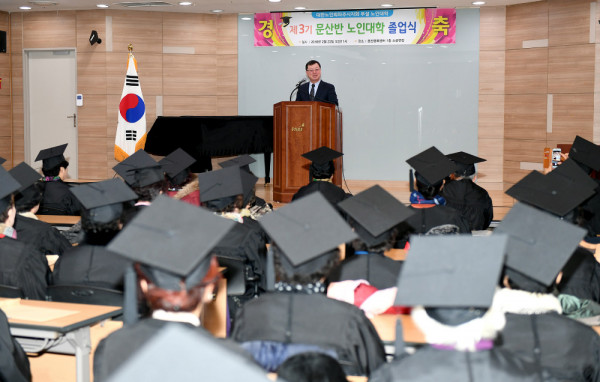 이날 졸업식에는 학사일정을 무사히 마친 81명의 졸업생들이 졸업증서를 수여받았으며 노인대학 운영에 도움을 주시고 모범을 보인 어르신들이 우수교육생 10명에게 표창했다. 또한 노인대학에 결석 없이 성실하게 참여하신 5명의 어르신들에게 개근상을 수상하는 등 약 2년 간의 학사일정을 마치게 됐음을 축하하는 시간을 가졌다.