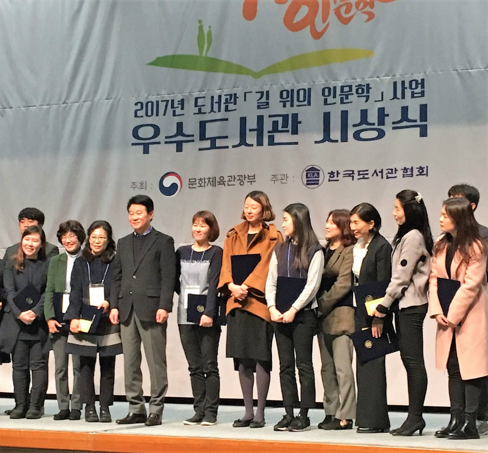 이번 시상식은 지난 11월 29일 여수 엠블호텔 컨벤션센터에서 200여명의 사서들이 참석한 가운데 열렸다. 2017년 ‘도서관 길 위의 인문학’ 사업에 공모한 도서관은 전국 403개관으로 대치도서관과 평택시립장당도서관이 문화체육관광부 장관상을 수상했고 교하도서관을 비롯한 20개 도서관이 한국도서관협회상을 수상했다.
