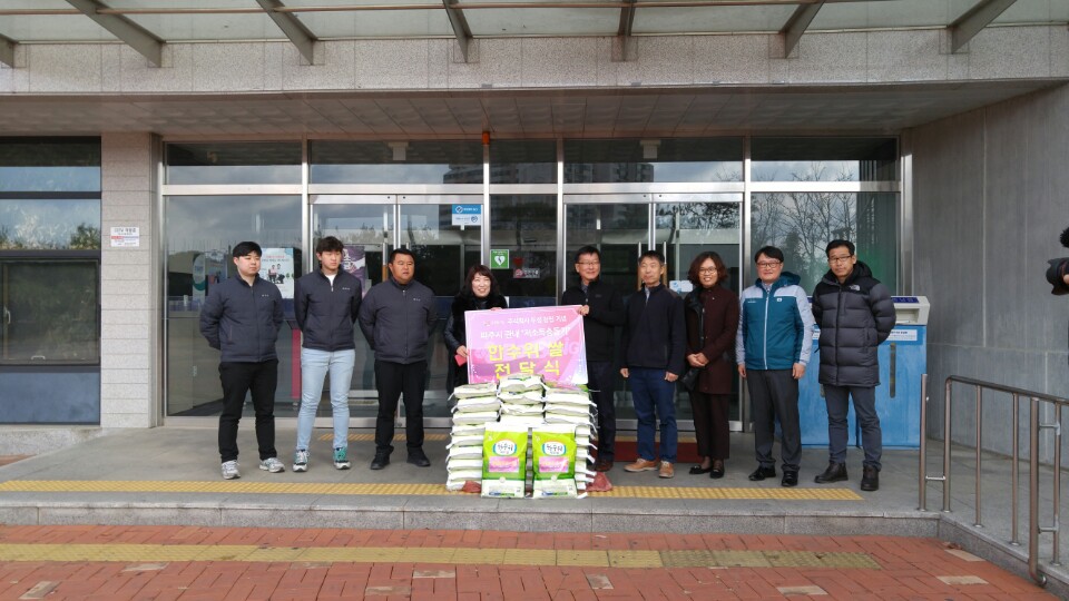 사회적기업 ㈜두성(대표이사 마희정)에서 지난 23일 연말연시를 맞이해 파주시 금촌3동 행정복지센터에 백미10kg 30포를 기탁했다.