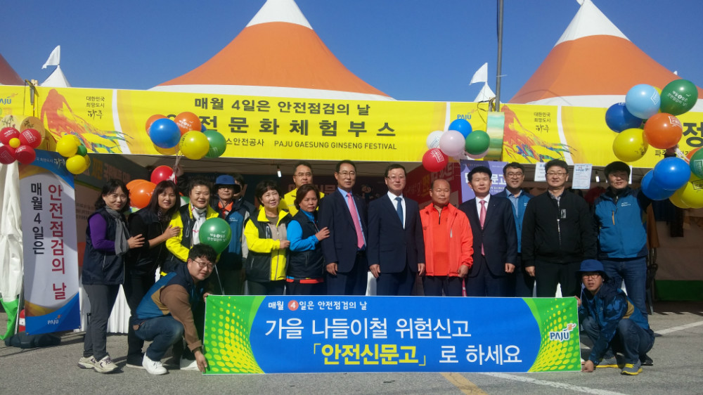 파주시는 축제가 시작되는 24일부터 26일까지 3일간 안전문화 홍보부스를 운영하며 안전점검의 날 및 안전신문고 홍보 풍선, 지진대비 행동요령이 담긴 생활안전가이드 등을 나눠주며 안전의식 개선을 위한 홍보활동을 할 예정이다.