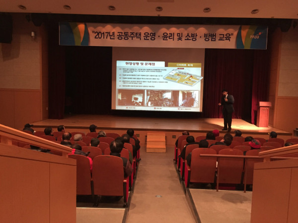 파주시는 지난 21일 시민회관 소공연장에서 관내 의무관리 공동주택 121개 단지 경비업무종사자, 안전관리자 및 입주자대표회의 구성원 400여명이 참석한 가운데 공동주택 입주자대표회의 운영·윤리 및 소방·방범 안전 교육을 실시했다.